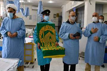 امروز جمعی از خادمین حرم امام رضا (ع) با حضور در بیمارستان پورسینا از بیماران